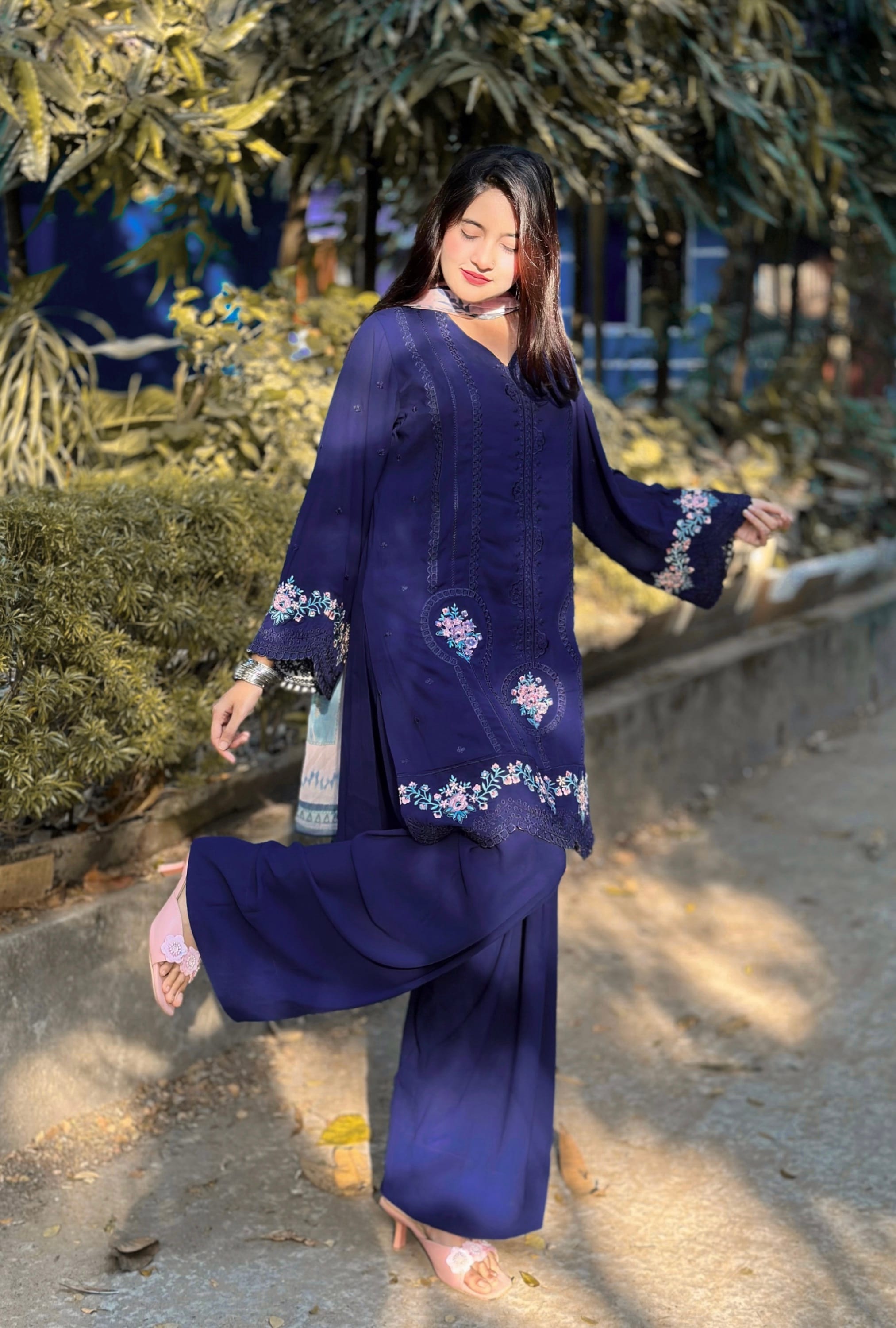 Step into timeless elegance with this exquisite 3-piece suit, beautifully adorned with intricate floral embroidery. The delicate details on the kameez, paired with a matching printed dupatta and flowy bottoms, bring together comfort and sophistication in one perfect outfit. Ideal for festive gatherings, family events, or casual outings – this set is designed to make you feel confident, graceful, and effortlessly stylish. A must-have for your wardrobe!