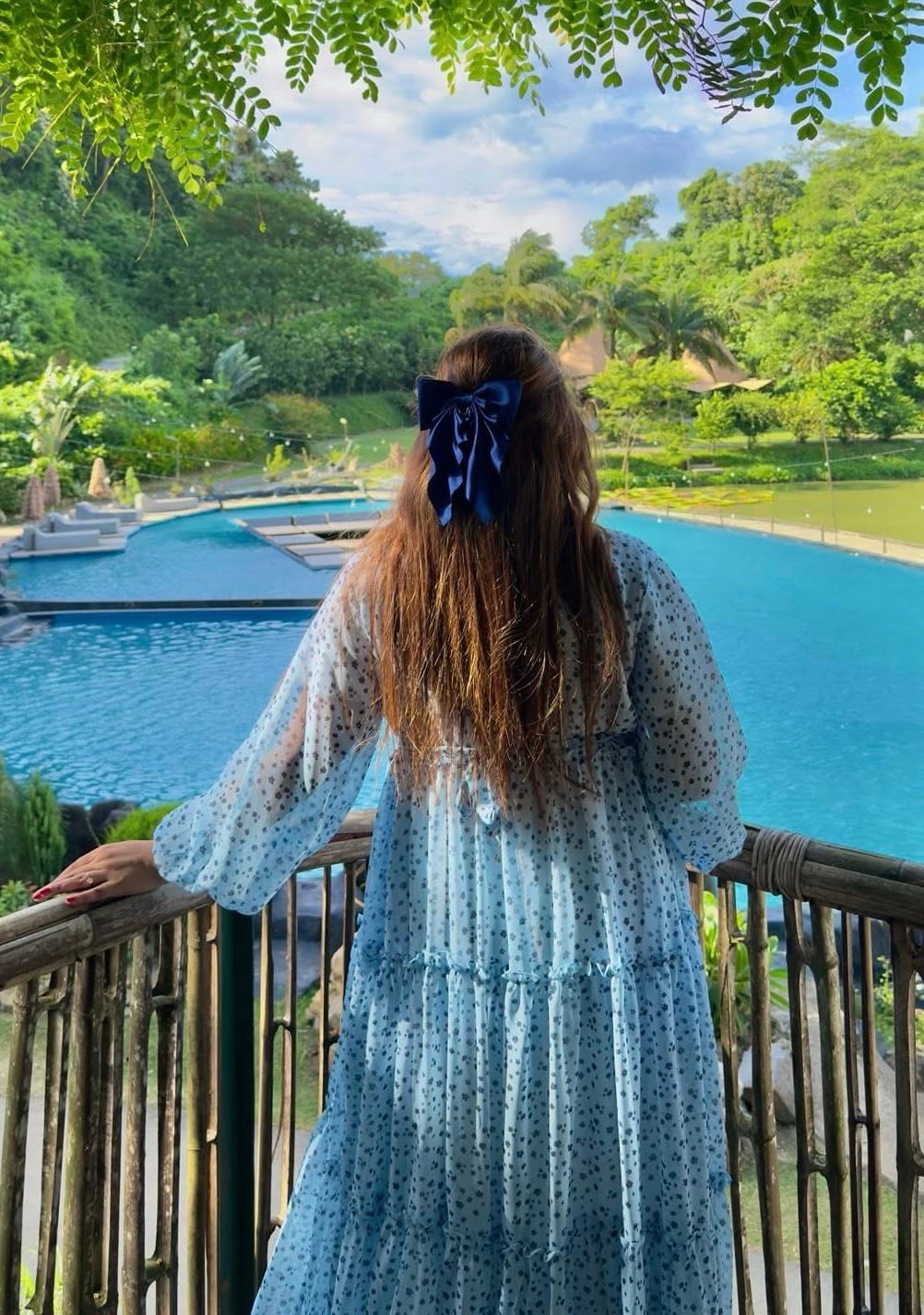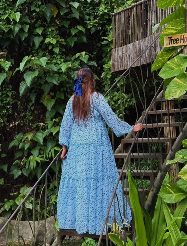 Float through your day like a modern-day Cinderella. Embrace effortless elegance on your next tour with this beautiful floral gown. Soft, airy, and designed for graceful movement, it’s the perfect travel companion for those who seek beauty in every moment.