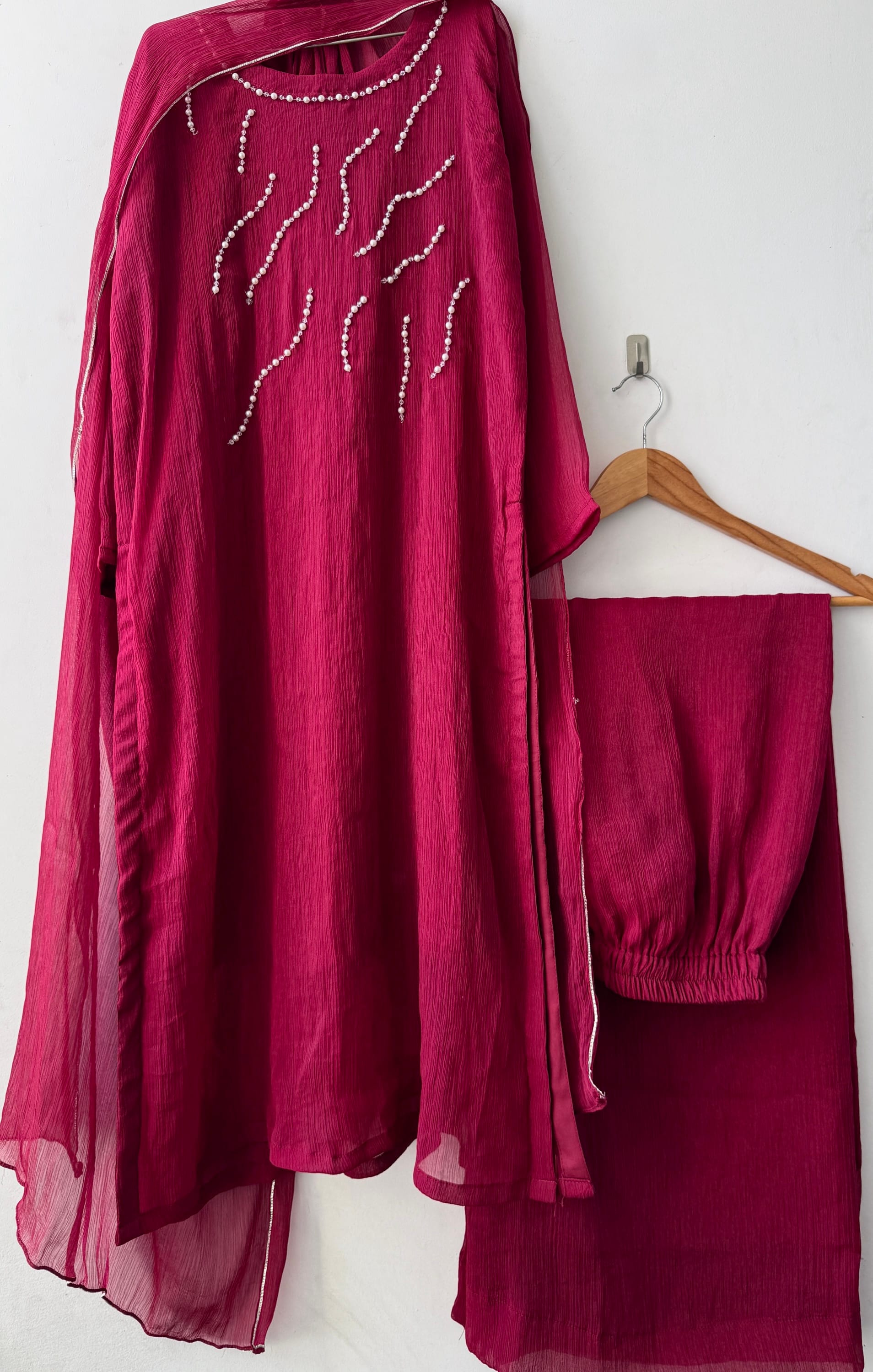 •Material: Soft shimmer chiffon (inner attached)