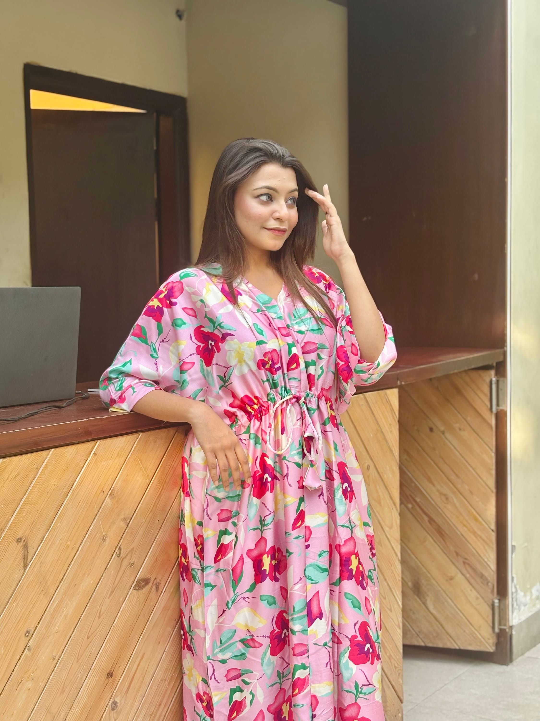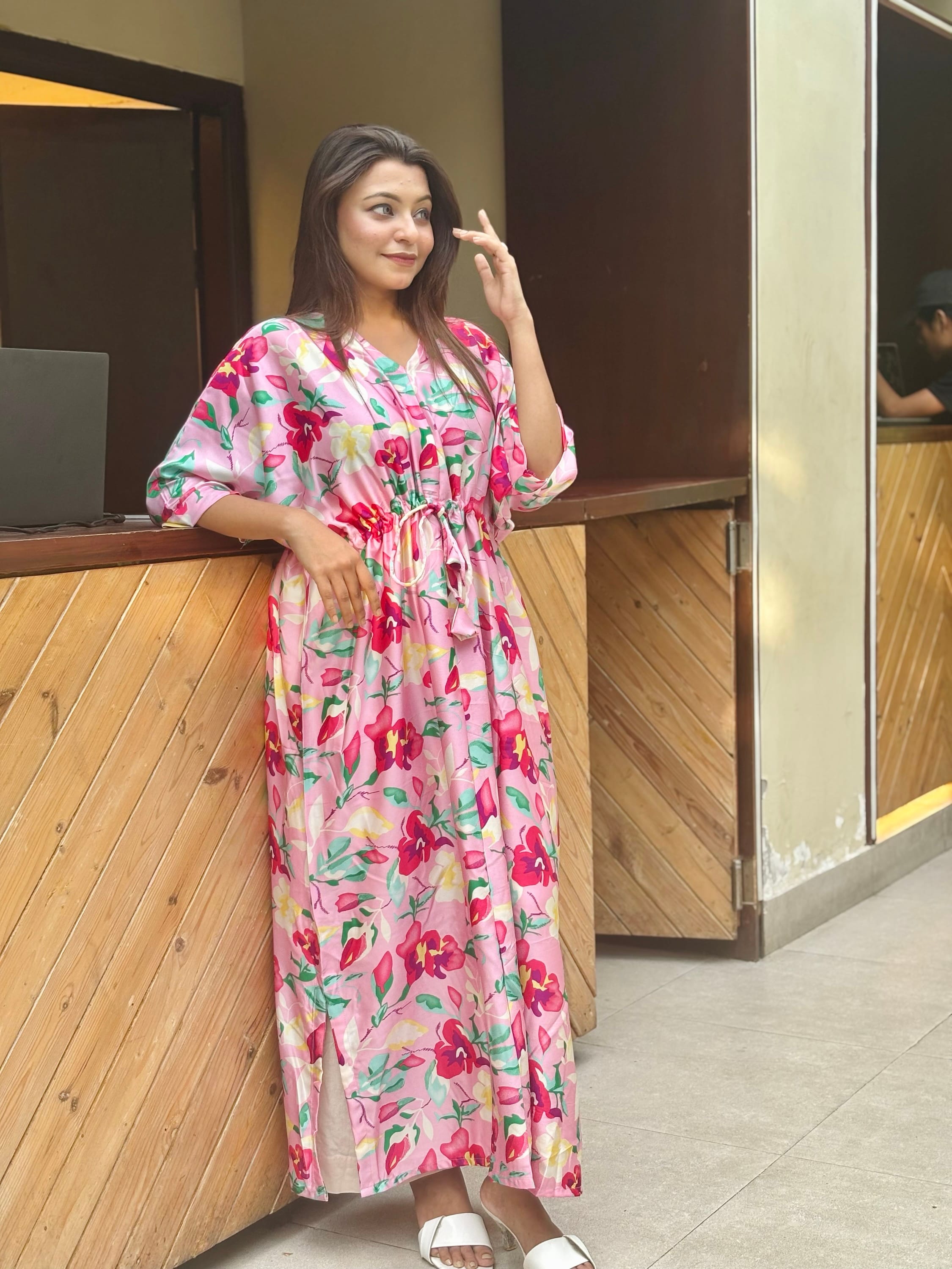 Kaftan style gown.
