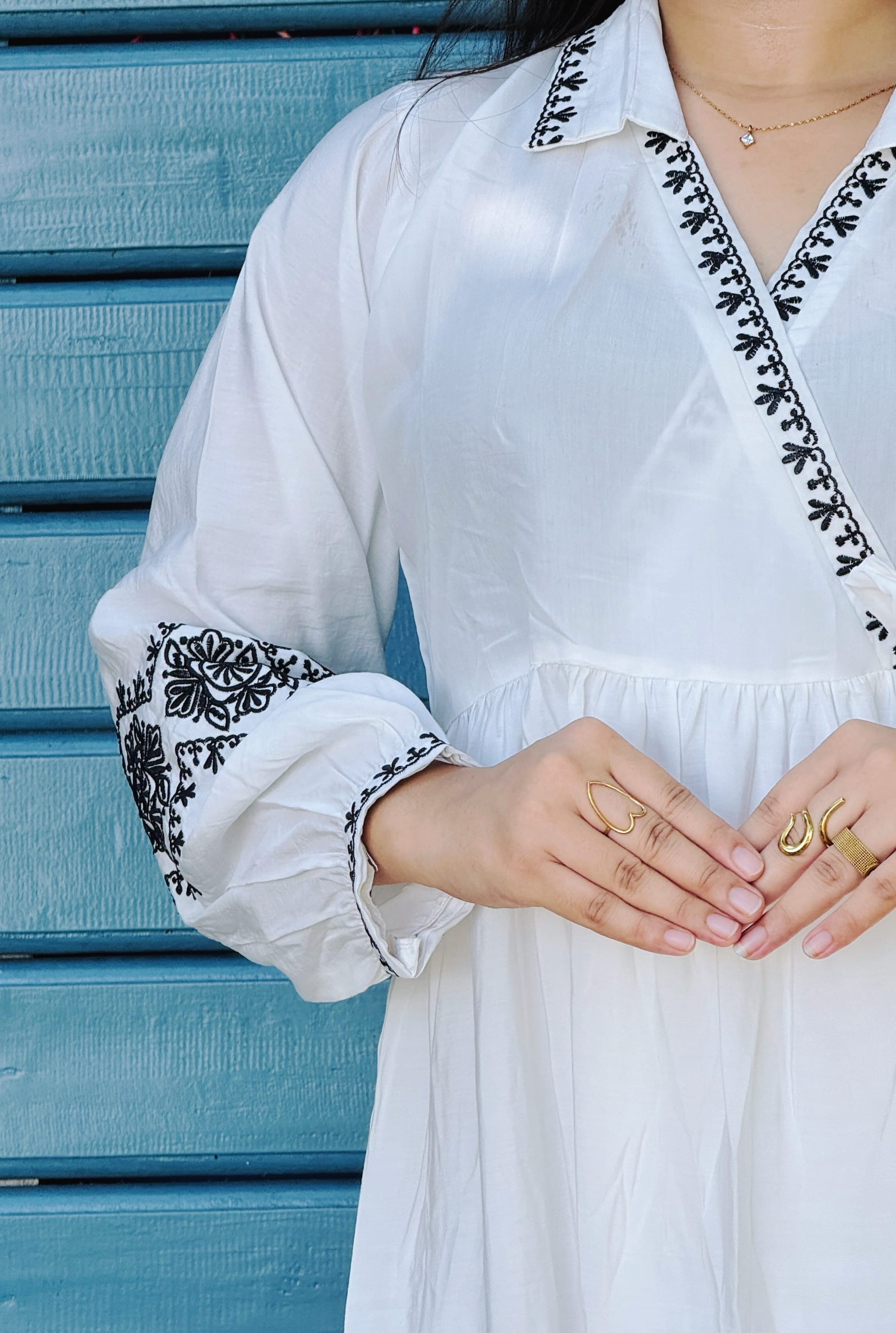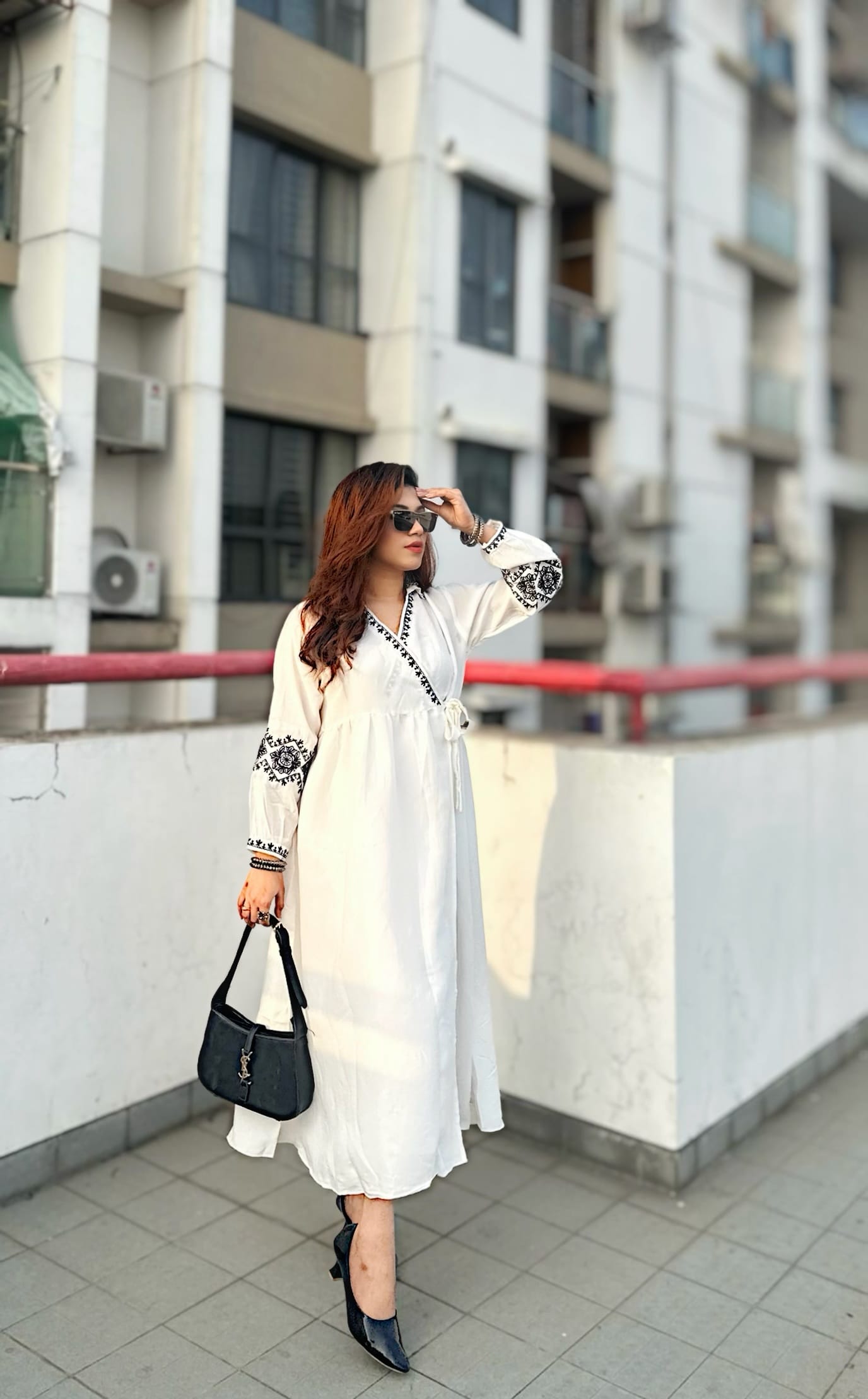 Embrace effortless elegance with this beautiful embroidered wrapped dress which is Classy, charming yet effortless, attractive yet elegant! This chic and comfortable ensemble is your go-to outfit for any outing. Whether you’re heading to brunch or running errands this dress ensures you stay stylish and comfortable all day long.
