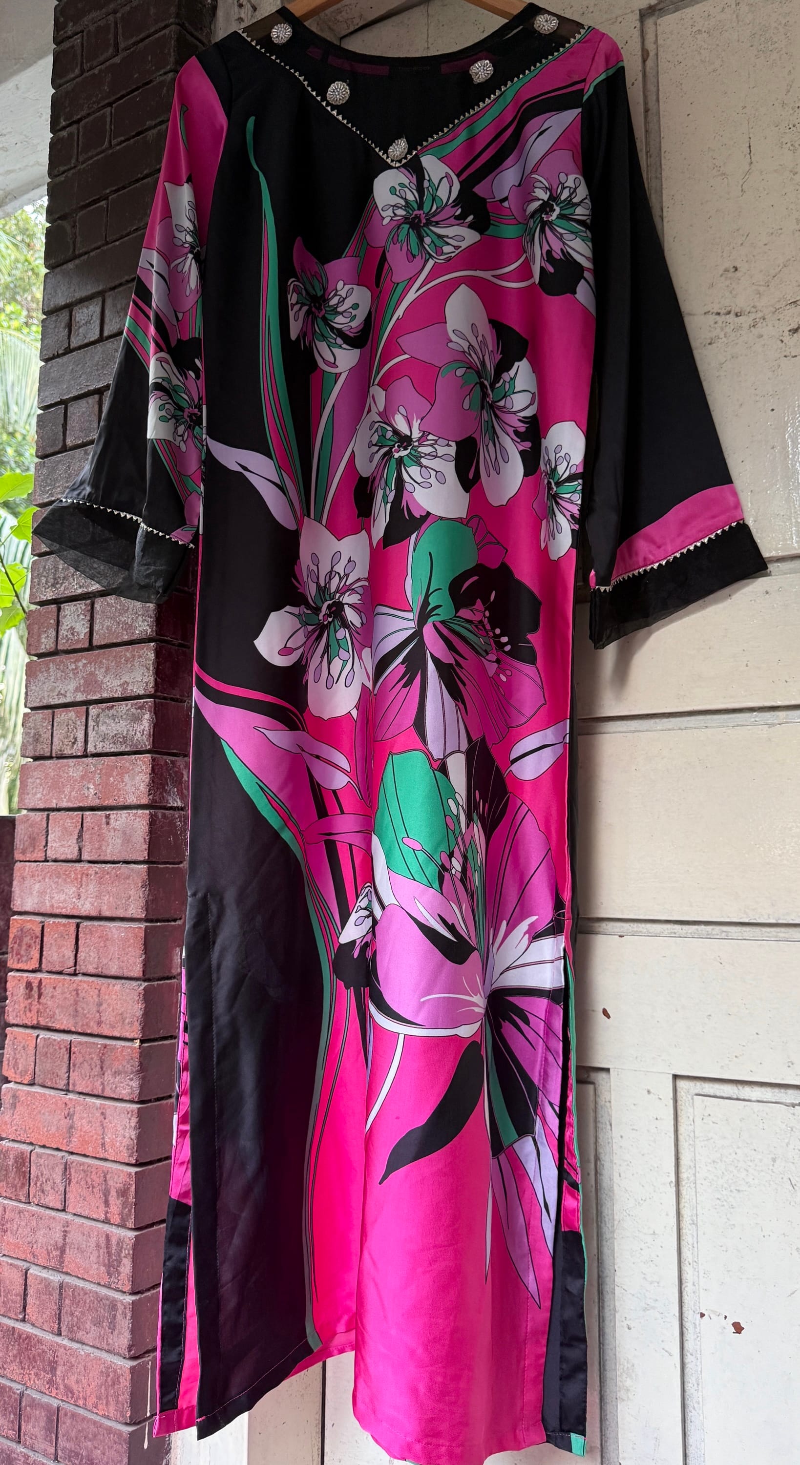 A timeless classic you can’t miss! This designer long kamiz is crafted with intricate detailing and rich patterns that speak of elegance and class. Perfect for any occasion where you want to stand out effortlessly.